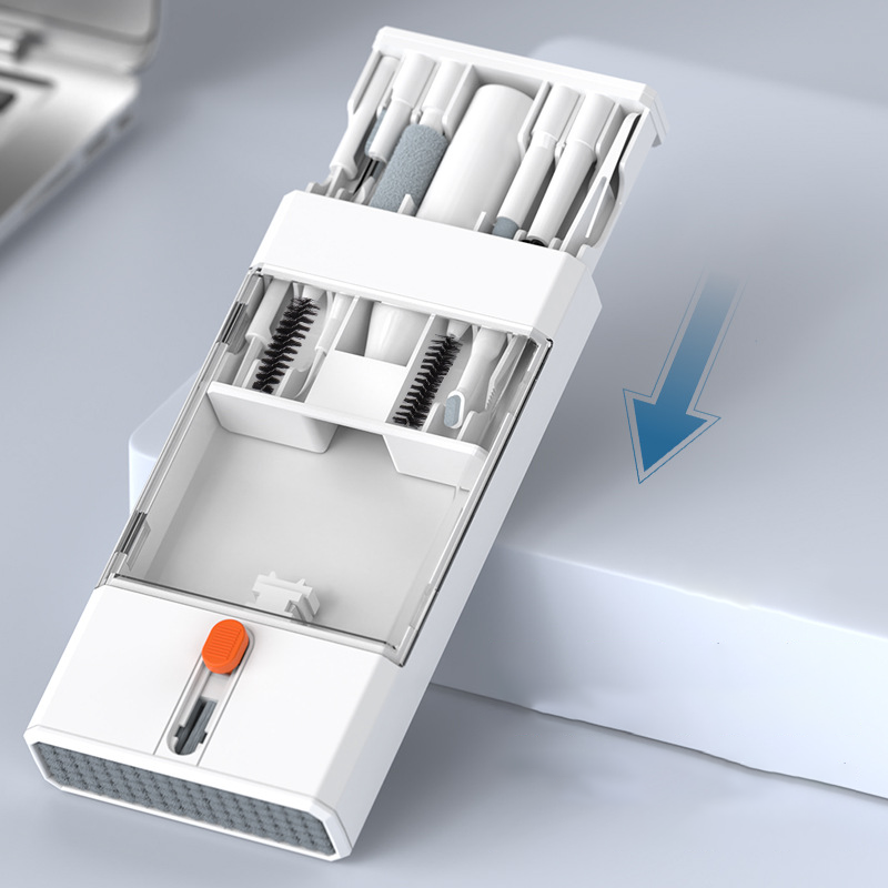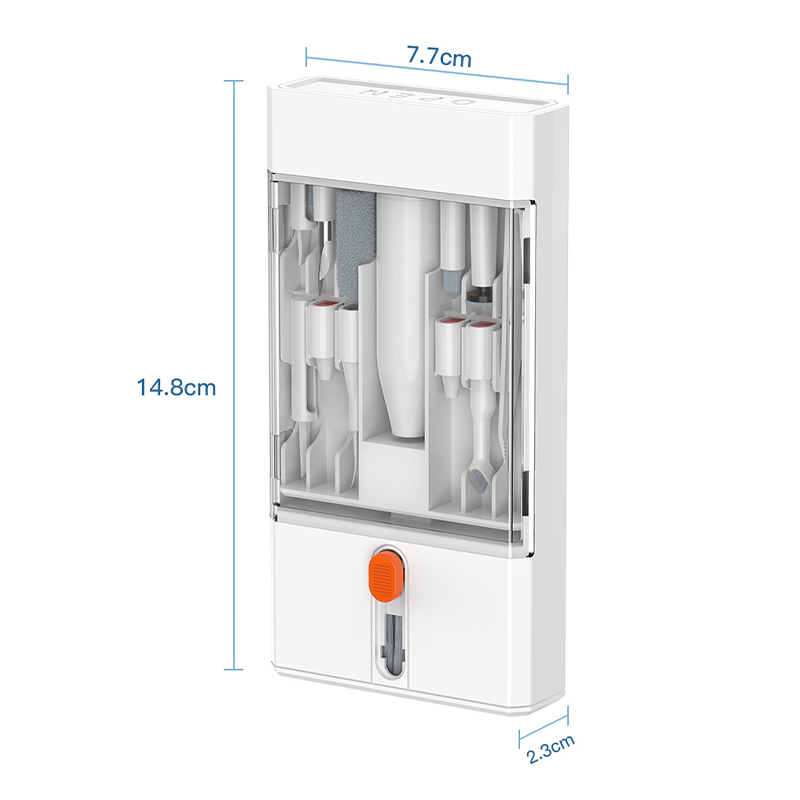 1xTool Holder, 1xSoft Bristle Brush (Small), 1xStiff Bristle Brush (Small), 1xEject Pin, 1xKeycap Puller, 1xSwitch Puller, 1xSlotted Dust Blade, 1xFlat Tip Brush for Earbud Case, 1xHook Tip Cleaner, 1xExtension Rod, 1xScreen Cleaning Solution (5ml), 1xPointed Tip Brush for Earbud Case, 1xAngled Brush, 1xTweezers, 1xFlat Tip Lens Wipe, 1xShort Soft Bristle Brush, 1xFoam Tip Cleaner for Earbud Case, 1xEarbud Brush, 1xPrecision Cleaning Pen, 1xSide Dust Scraper, 1xKeyboard Brush (Large), 1xMicrofiber Cleaning Cloth on the Back