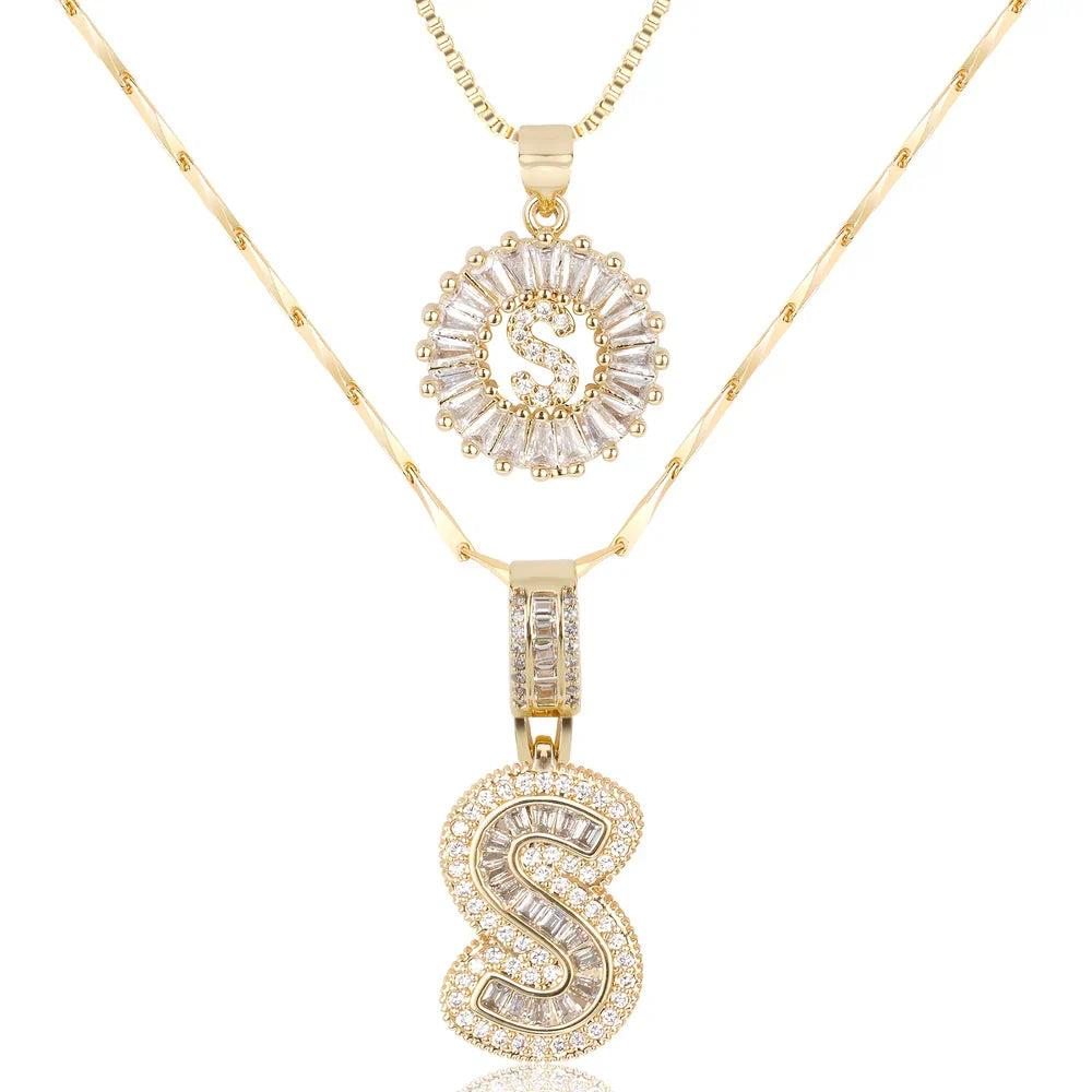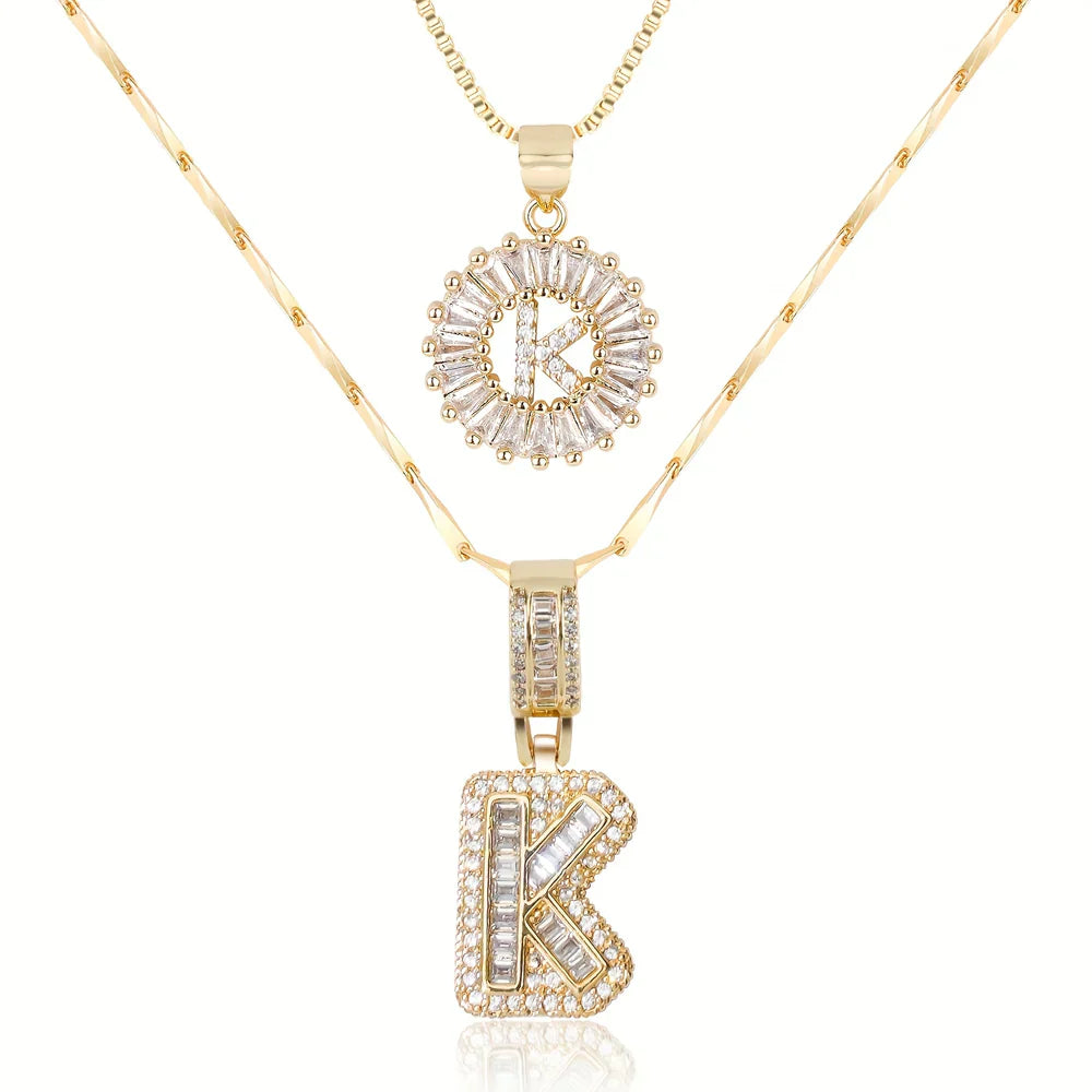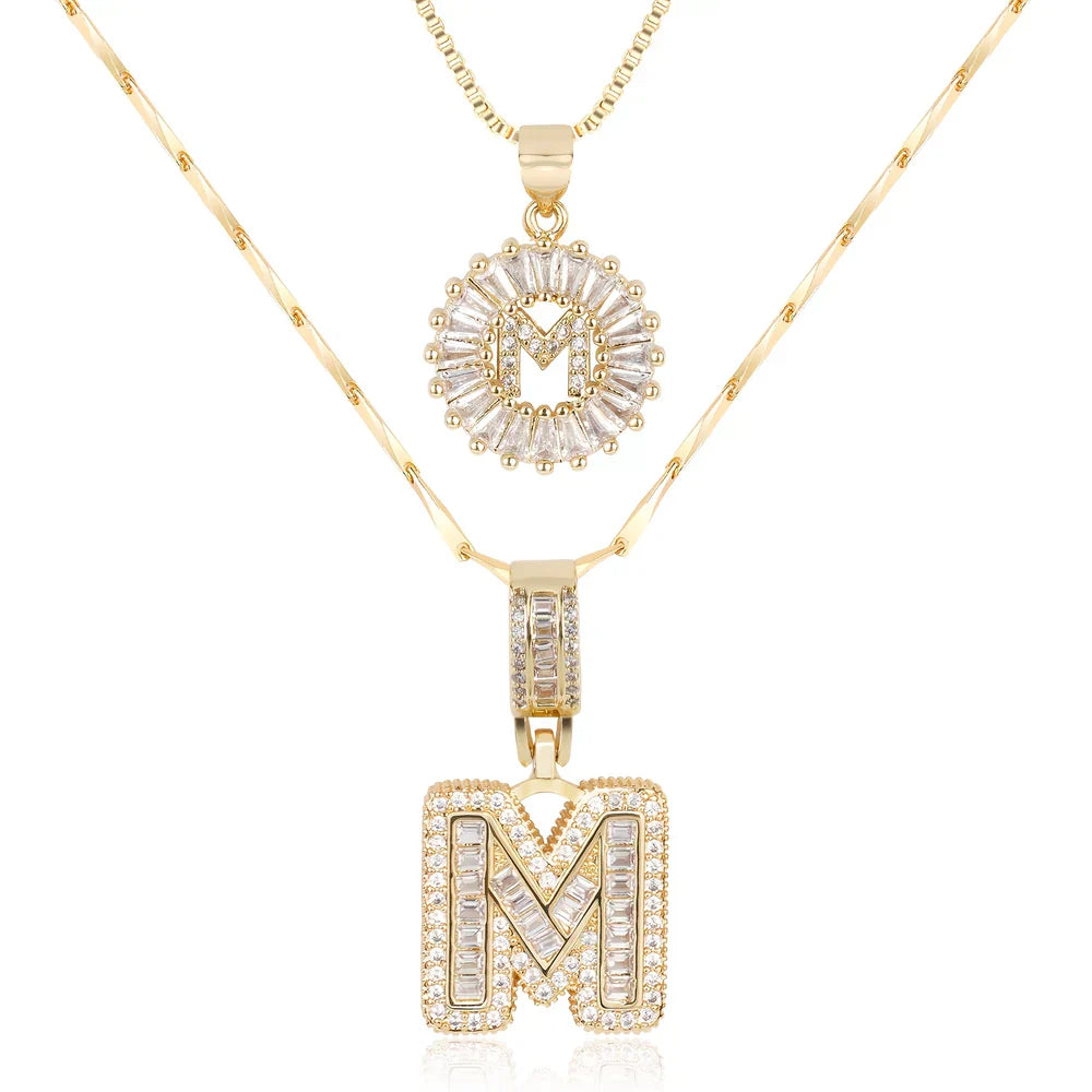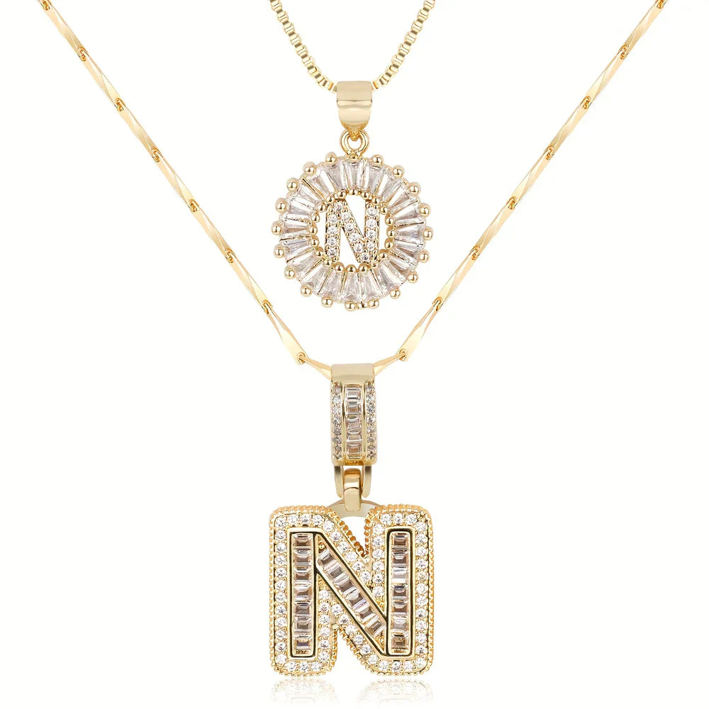 - A bold block initial pendant adorned with dazzling baguette crystals for a modern and eye-catching look. A classic round initial pendant with a radiant halo of sparkling stones for timeless sophistication.