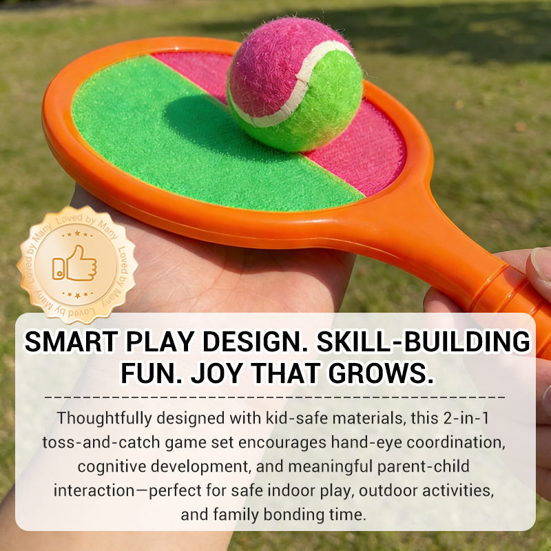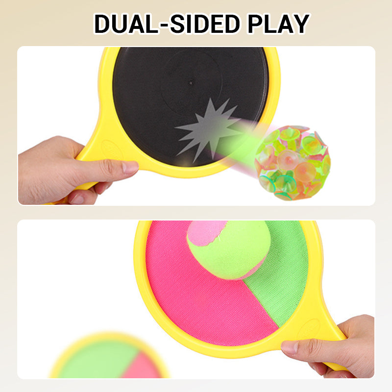 DUAL-SIDED PADDLES - Enjoy two exciting game modes with a single paddle. One side features a sticky surface for catching, while the other is smooth for different toss games, providing versatile, long-lasting fun.
