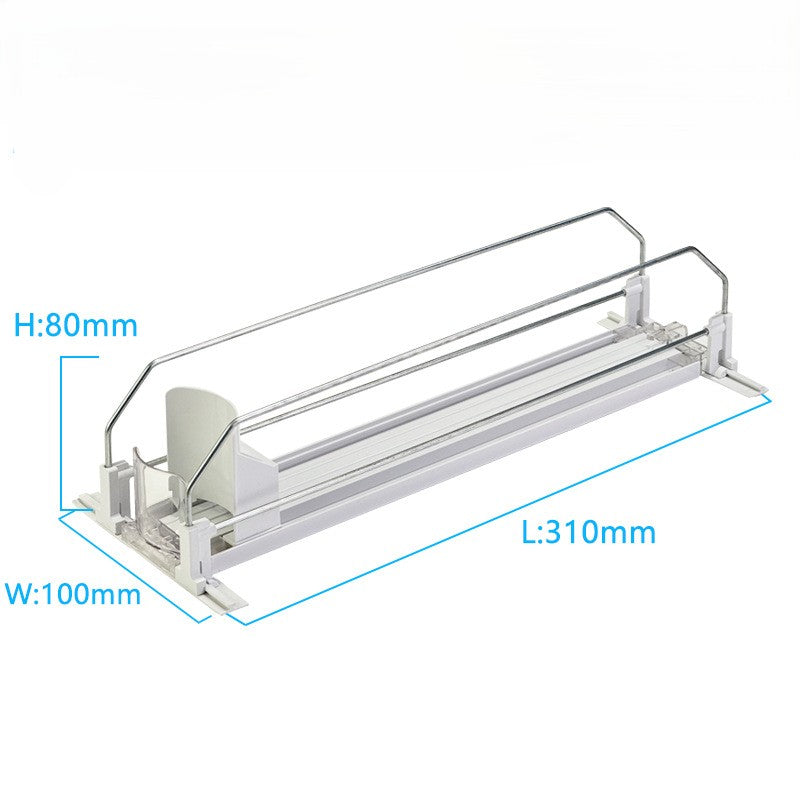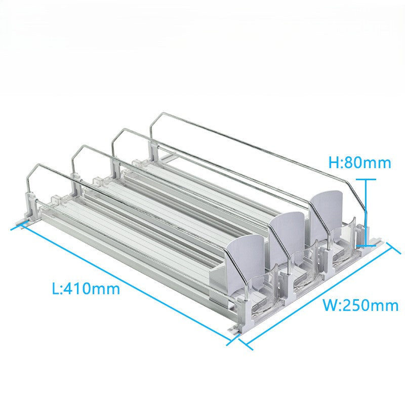 The Refrigerator Beverage Rack has a slide-out feature, which means you don't have to reach for beverages from deep inside the fridge with difficulty. When the first beverage placed on the fridge soda dispenser is removed, the beverages behind will automatically be pushed forward for easy access.