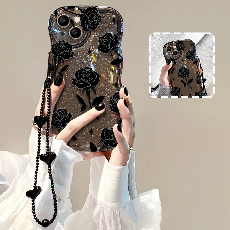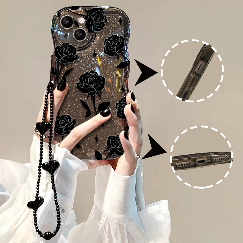 Package Includes:1*Black Rose Shockproof Wavy Case for iPhone 13–16 Series