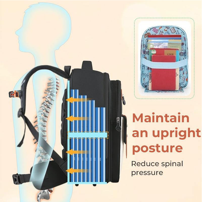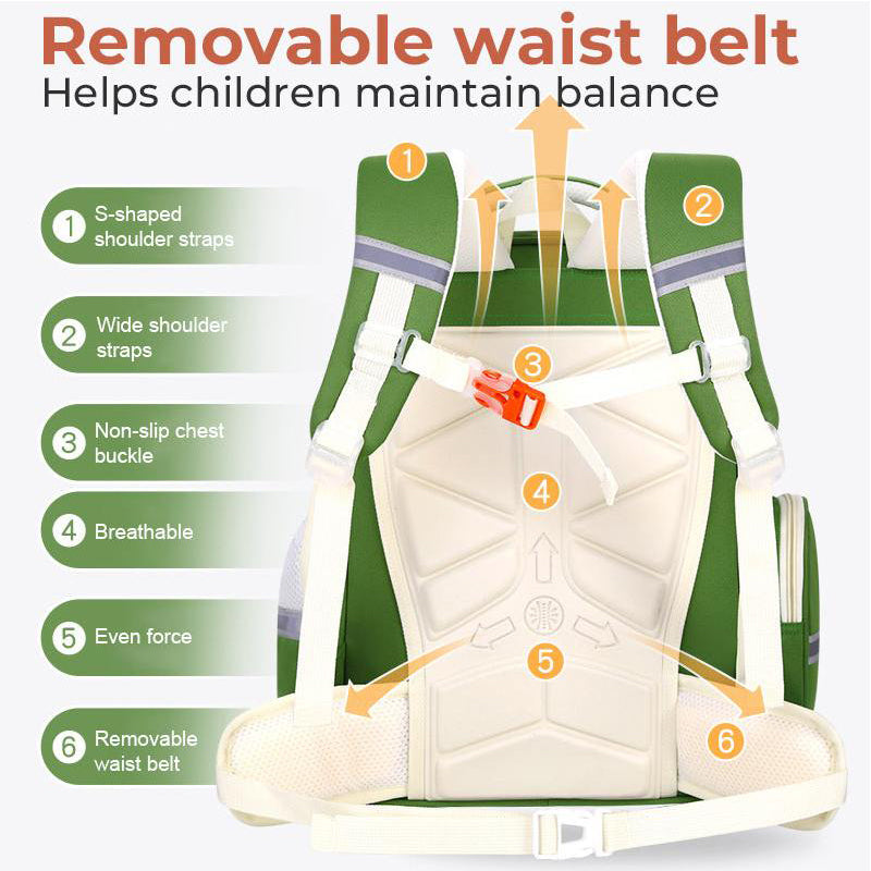 ERGONOMIC SUPPORT: Detachable belt stabilizes the center of gravity, evenly distributing weight across shoulders, back, and waist. Protects child’s spine and provides ergonomic support.