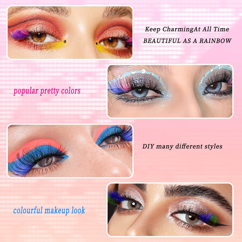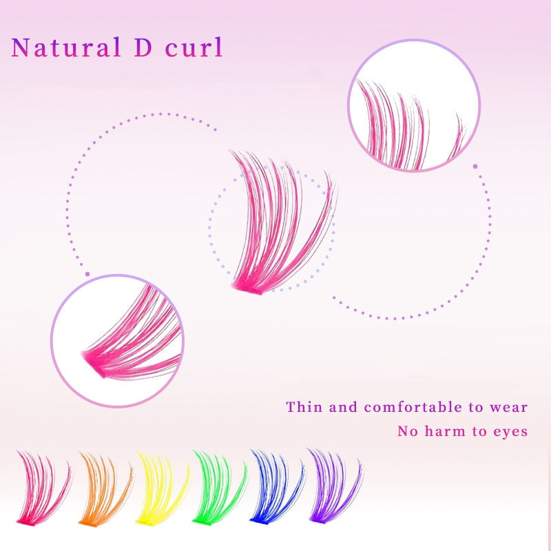VIBRANT & BOLD COLORS: The set includes 240 individual colored cluster lashes in various shades, including pink, purple, blue, and green, perfect for adding a pop of color to your lash extensions, cosplay, or festival makeup.
