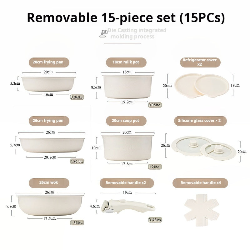 Package Includes: 1 * Non-stick Cookware Set with Removable Handle