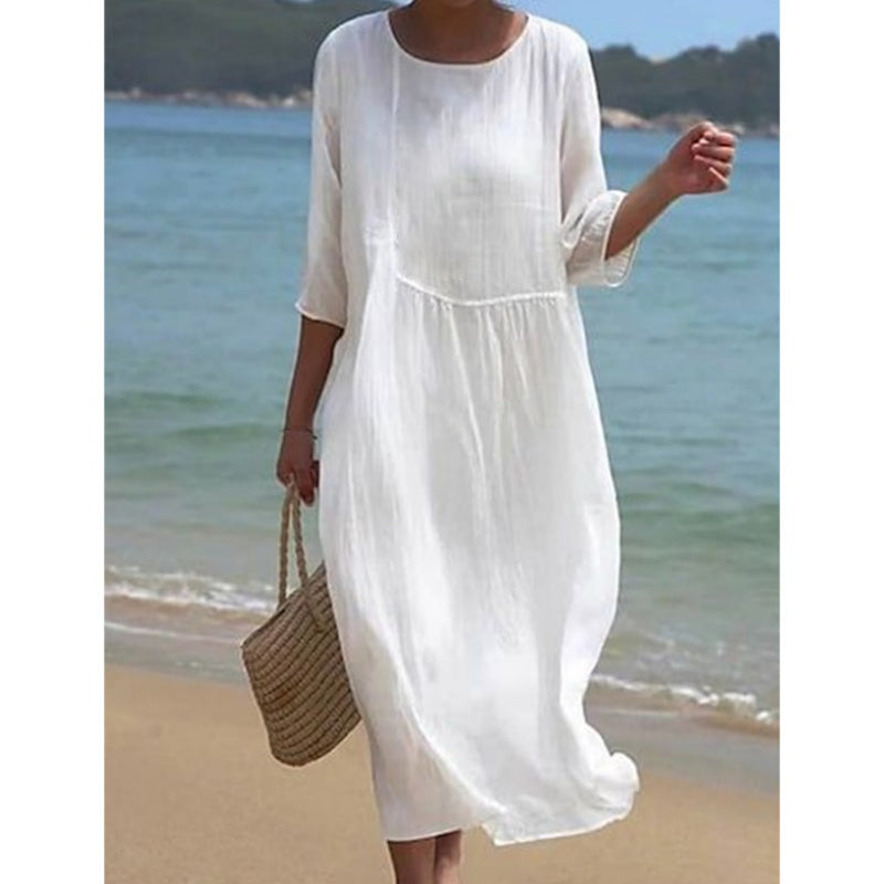COTTON LINEN FABRIC: Made from a high-quality cotton-linen blend, this dress is soft, lightweight, and breathable, ensuring all-day comfort.
