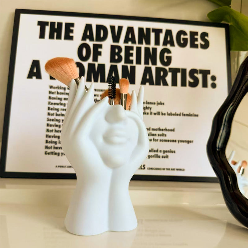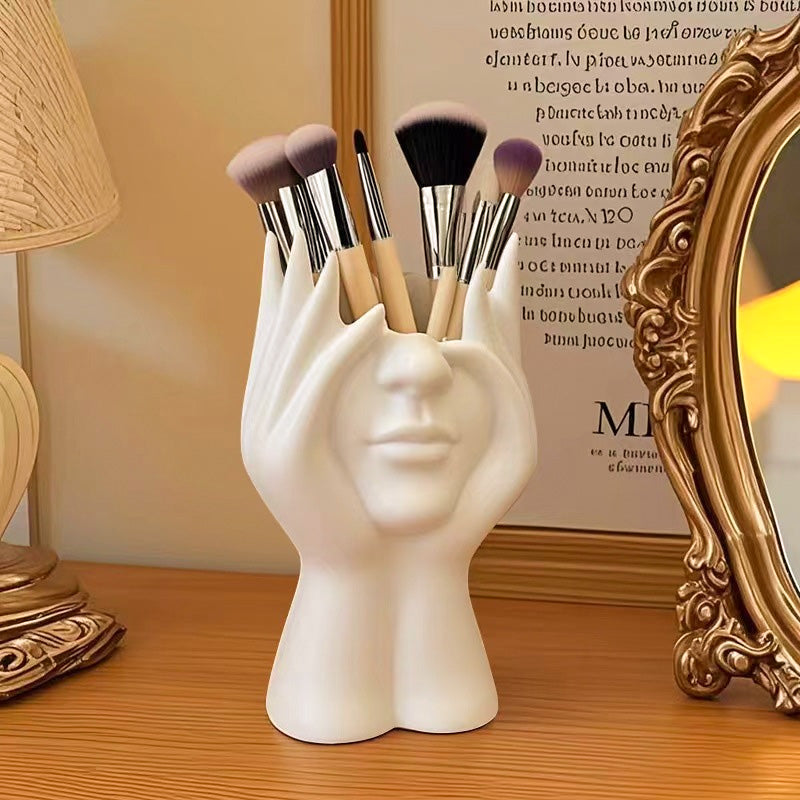 Creative Face-Holding Sculpture Makeup Brush Organizer