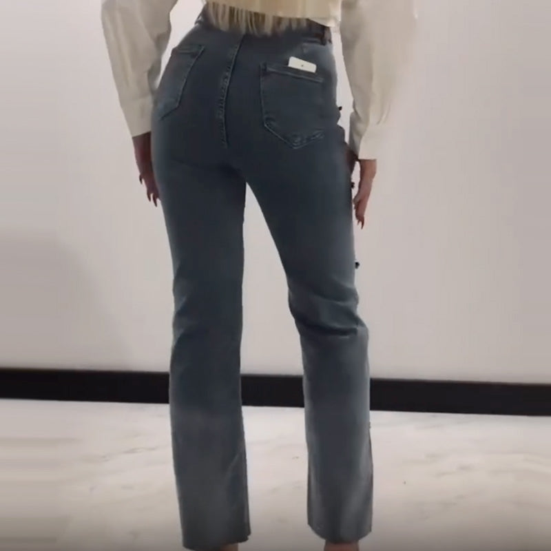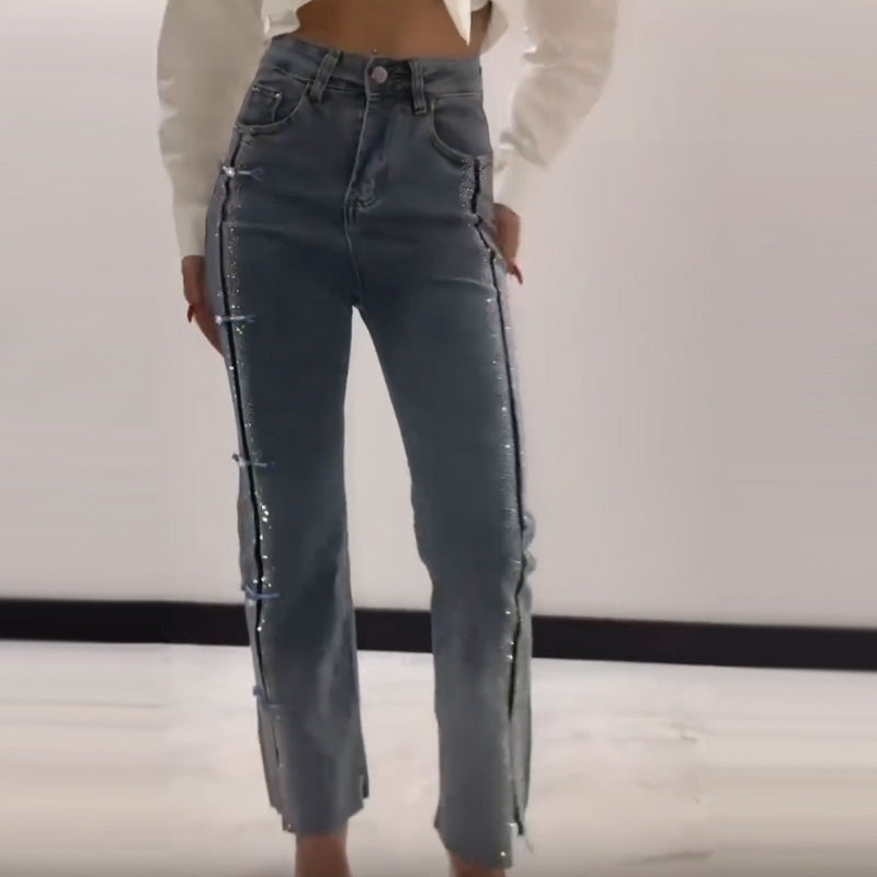 đâ¨Damen Jeans mit glänzenden Strasssteinen und schickem Schlitzâ¨