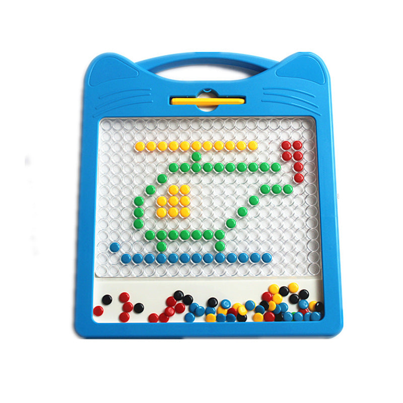 The magnetic board can be used over and over again, kids can enhance gross and fine motor skills using the magnetic pen drawing up, sliding, and dropping down the round colorful beans. The board can be easily erased by putting it upright.