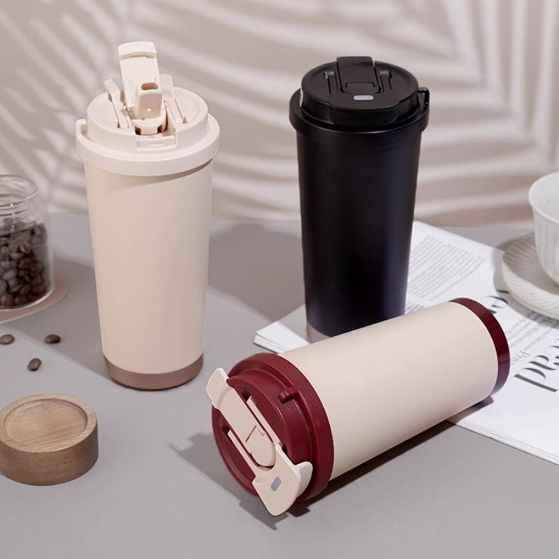 ELEGANT PORTABLE COMPANION - Beyond its functionality, this travel mug boasts a refined aesthetic, combining modern lines with a comfortable, portable form factor. Its lightweight build and convenient integrated handle make it effortless to carry, offering both style and practicality as your perfect everyday accessory.