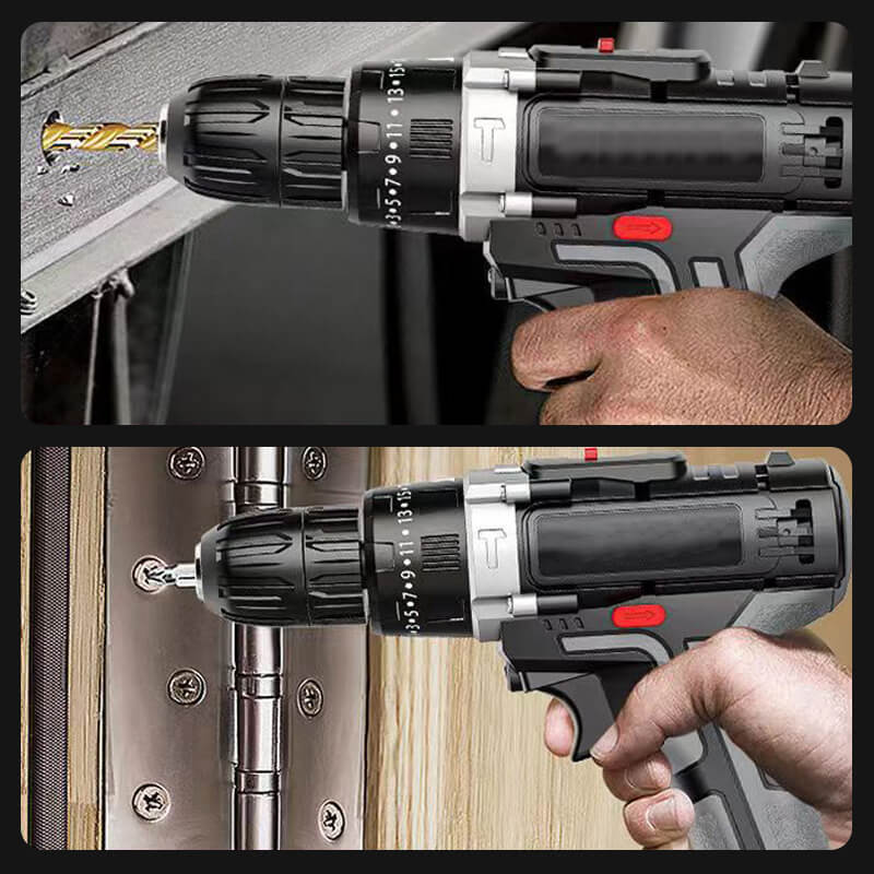 This Electric Household Lithium Impact Drill is equipped with a high-powered motor that provides up to 350 in-lbs of torque, making it ideal for drilling through wood, metal, and plastic.