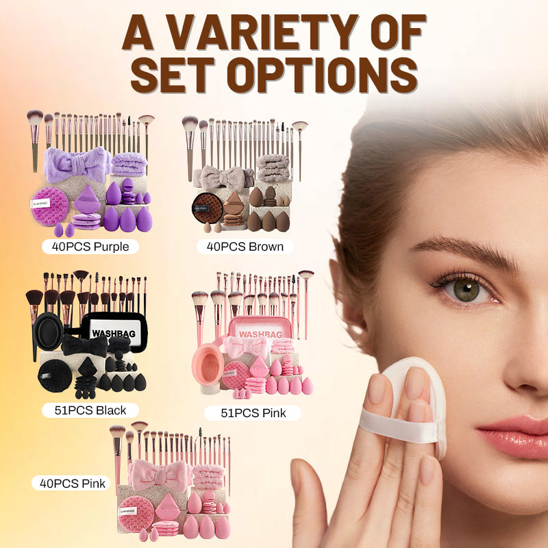 COLOR & SIZE VARIETY - Available in 40-piece sets (brown, purple, pink) and 51-piece sets (black, pink) to match your personal style. Each set is thoughtfully curated for versatility, convenience, and travel-friendly beauty organization.