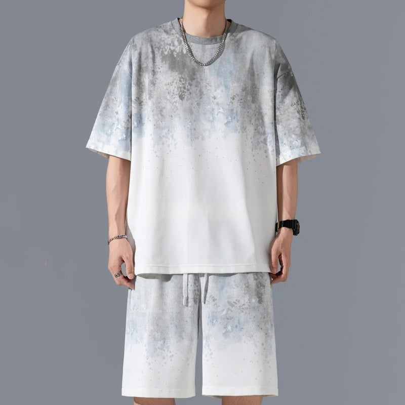 Men's Breathable Short-Sleeve Tops & Shorts Tracksuits Set