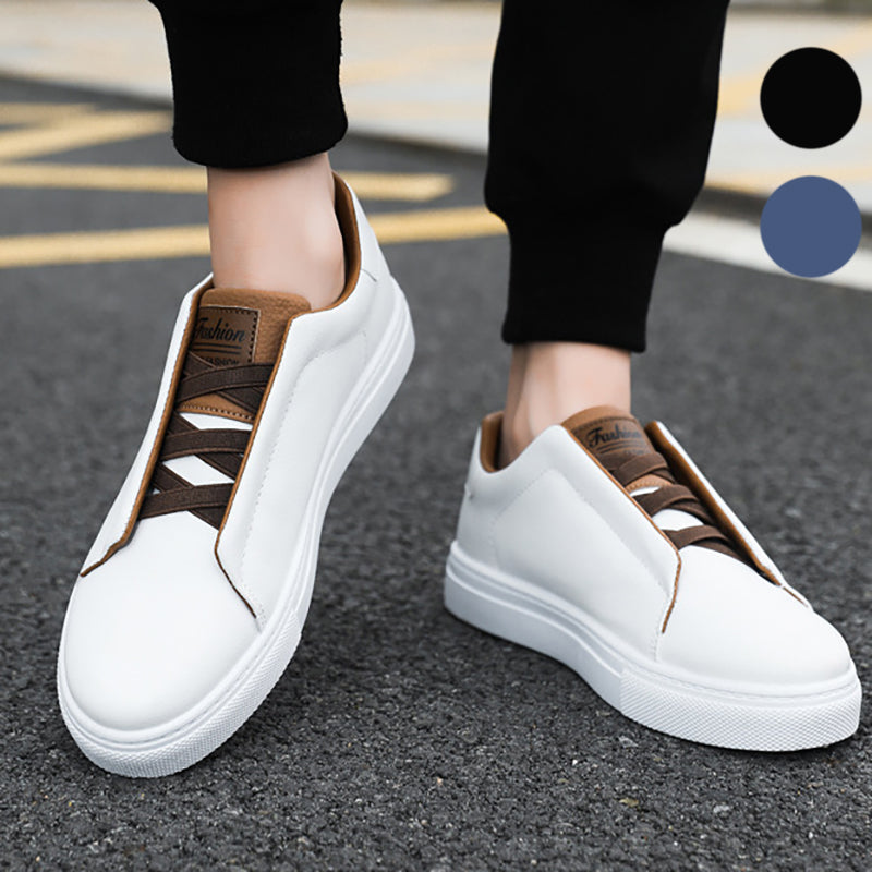 SLEEK & MINIMALIST: A seamless PU leather upper with a color contrast interior and tongue creates a sophisticated and versatile look. The modern slip-on design hides the laces for a streamlined finish.