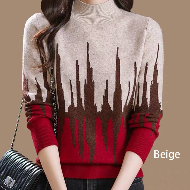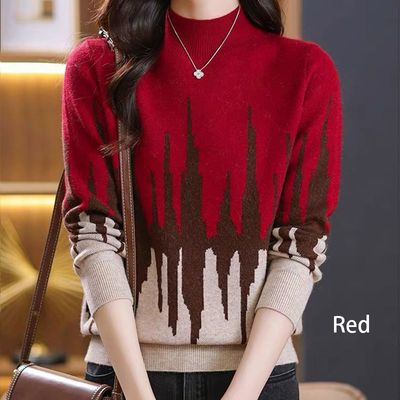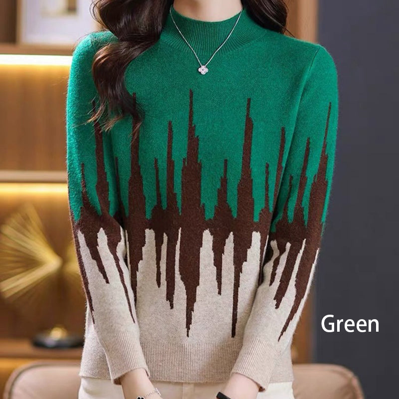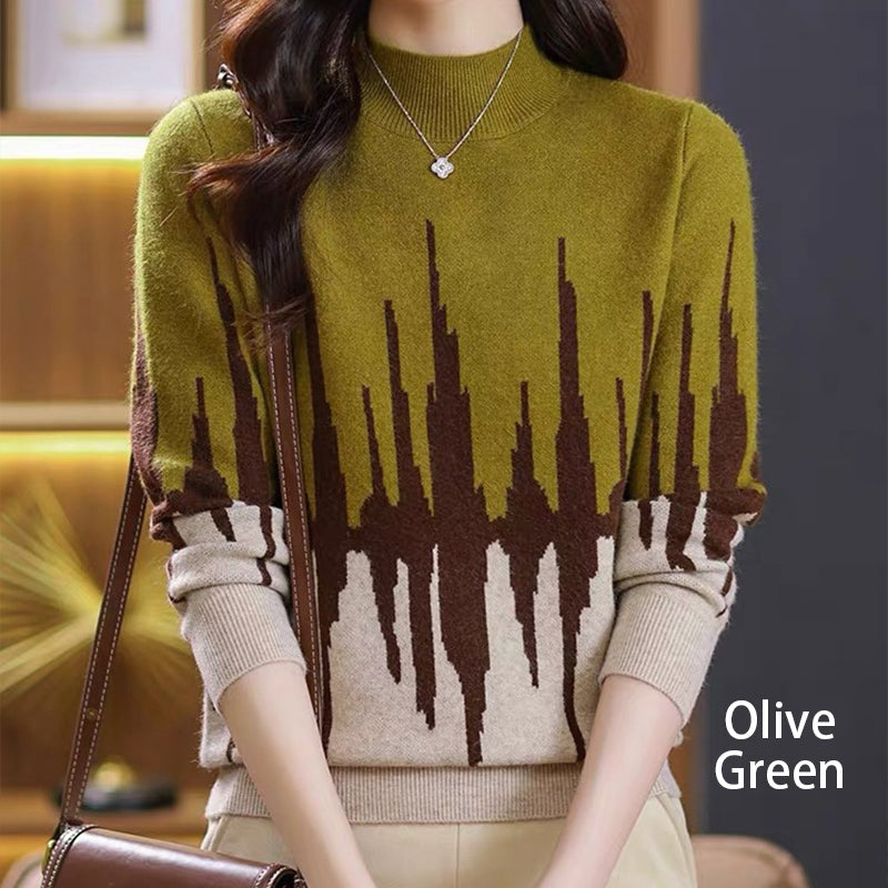 š„Colorblocked Fashion Casual Mockneck Knit Topš