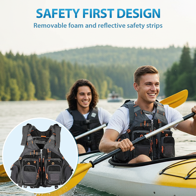 DUAL-FUNCTION SAFETY DESIGN: Features removable EPE foam for buoyancy and reflective strips for high visibility, providing essential safety during fishing or kayaking, ensuring you stay seen and afloat in emergencies.