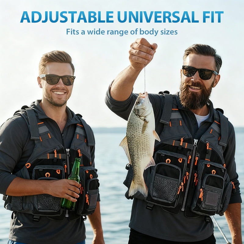 FULLY ADJUSTABLE FIT: With adjustable shoulder and side straps, this one-size-fits-most vest provides a secure and comfortable fit, allowing for unrestricted movement while casting, paddling, or performing other activities on the water.