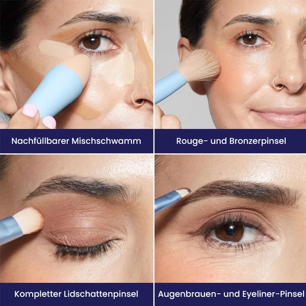 The multitasker was specially developed for travelling and helps you save space in your bag or handbag. With this brush in your beauty arsenal, you have everything you need to create a flawless make-up look wherever you go.