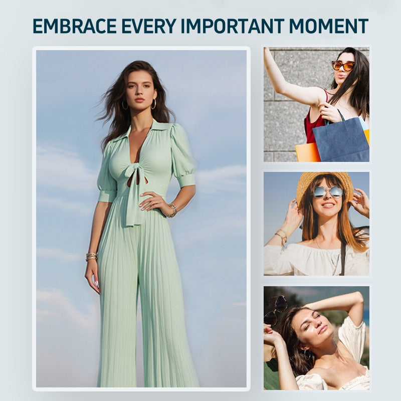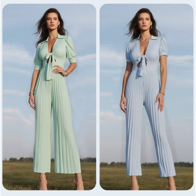 Women’s Solid Cut Out V-Neck Pleated Jumpsuit💛💛