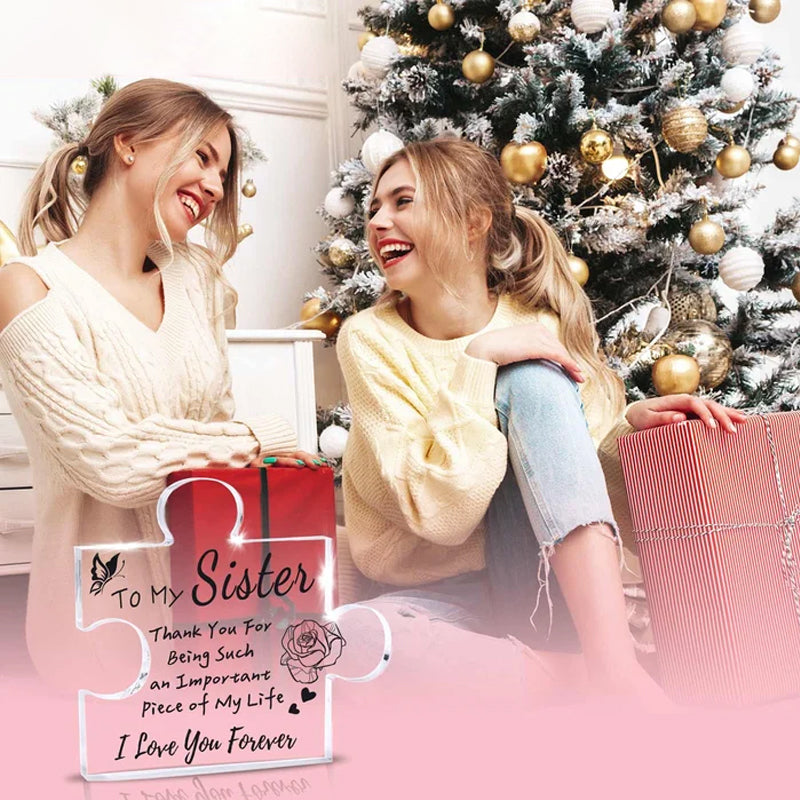 Beyond its sentimental value, this engraved puzzle acrylic plaque serves as a versatile decorative item. It can be proudly displayed on a desk, shelf, or living room, etc, radiating sisterly affection and adding a touch of warmth to a sister's room.