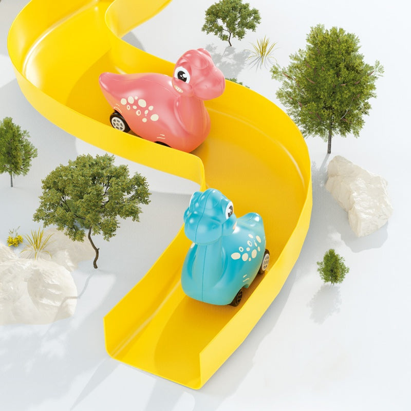DETACHABLE TRACKS: The track of this railcar toy set can be freely disassembled and pieced together to create different layouts, allowing smooth movement for the dinosaur-shaped cars.