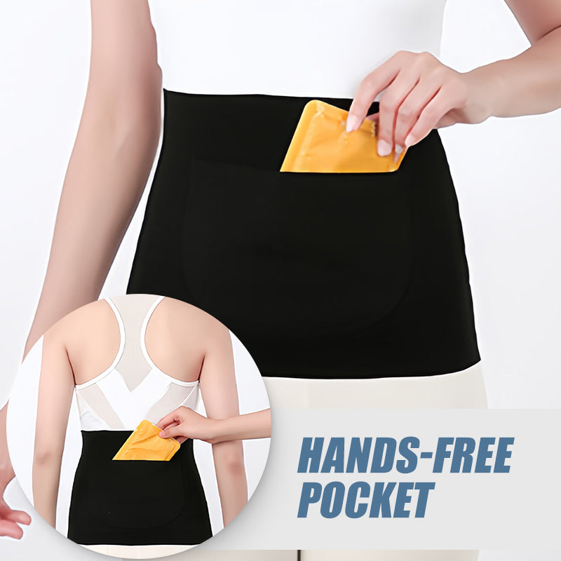 HANDS-FREE POCKET – A discreet pocket at the waist holds a warming patch or small essentials. Helps relieve period cramps or back aches while keeping your hands free. The pocket blends seamlessly into the slim design for easy convenience.