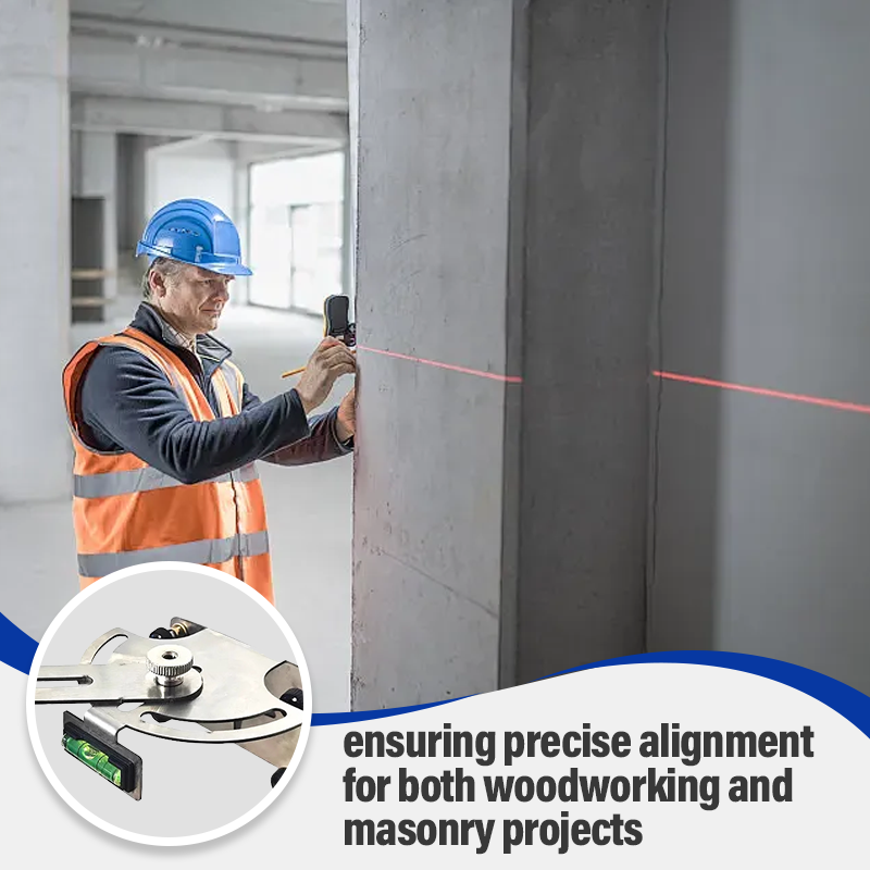 180-DEGREE FREE ROTATION FOR PRECISE ALIGNMENT: The tool features a smooth 180-degree rotating mechanism with an adjustable knob, allowing quick angle adjustments for various tasks. This design eliminates the need for multiple tools, saving time while ensuring precise alignment for both woodworking and masonry projects.