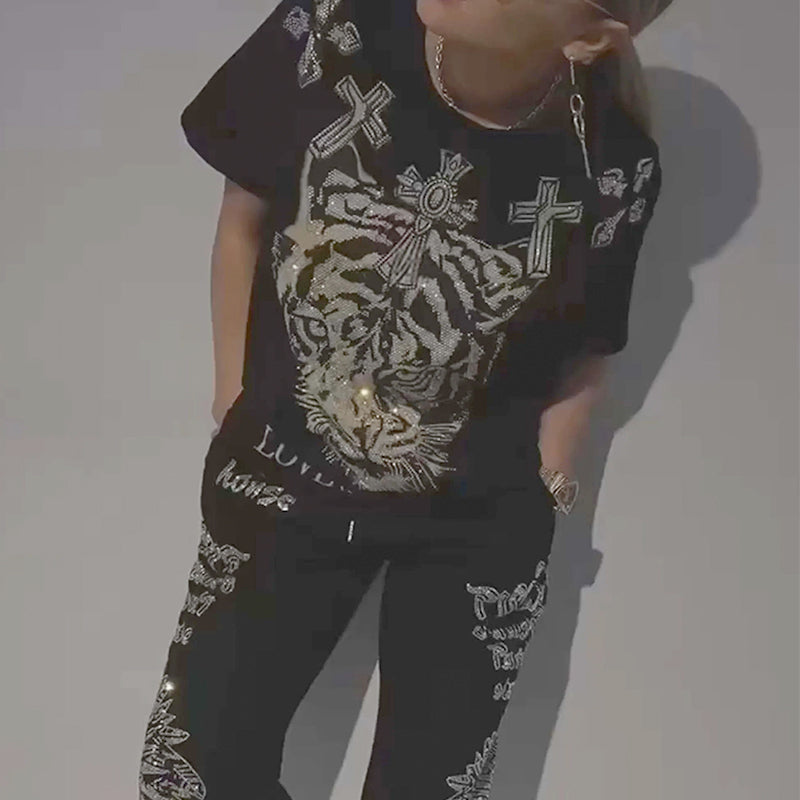 Package Included:1*Casual Printed Top Drawstring Pants 2-Piece Set