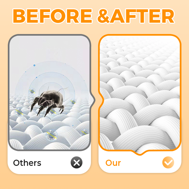 WARM AIR MITE REMOVAL AND UV-C STERILIZATION: Uses gentle warm air and UV-C light technology to safely eliminate dust mites and bacteria, ensuring a hygienic and allergen-free sleeping environment.