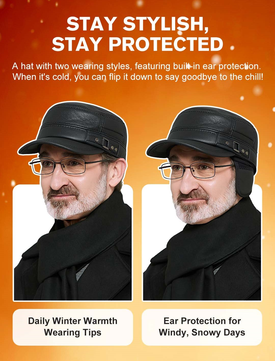 Package Includes: 1* PU Leather Flat Top Warm Baseball Cap