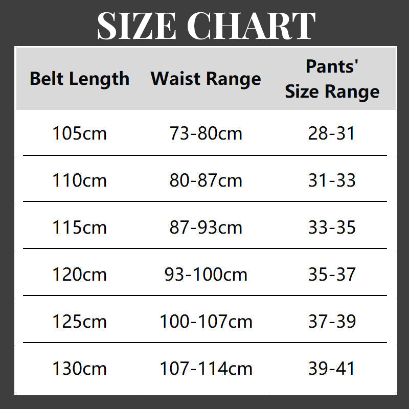 PERFECT FIT: With a range of sizes, this belt ensures a comfortable and precise fit for everyone. Whether you require a longer or shorter length, there's an option to meet your needs and provide optimal comfort.