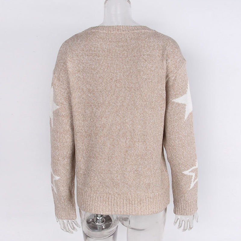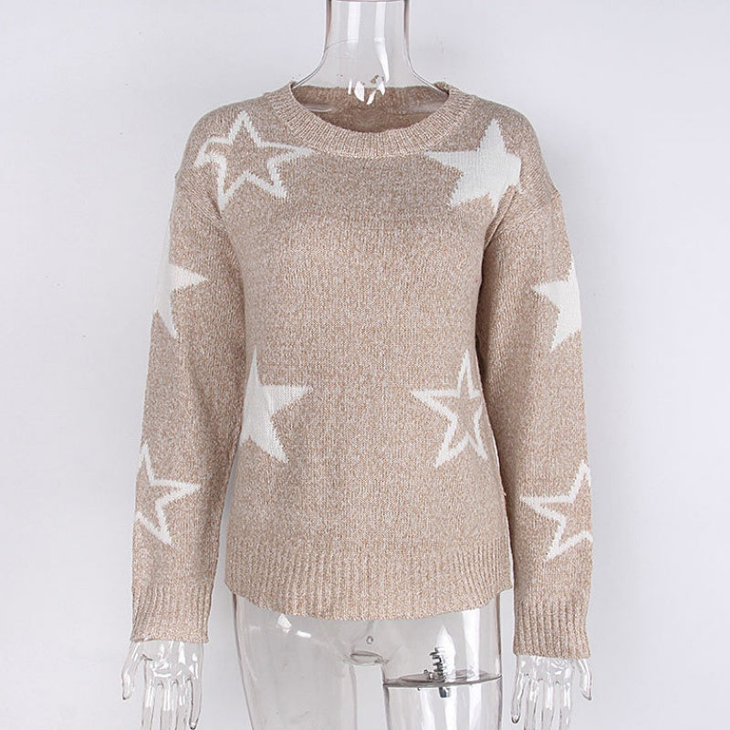 Package Includes:1*Women's Long-Sleeve Crew Neck Sweater with Star Pattern