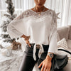 Women's Autumn 3/4 Sleeves Sexy Lace Sewn Elegant Vintage Style Blouse.