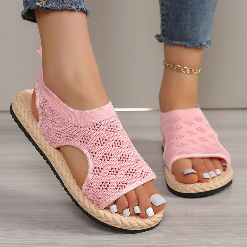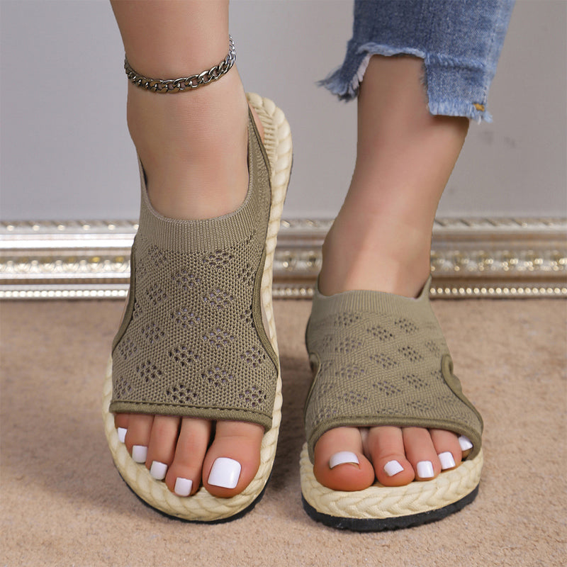Package Includes: 1 Pair * Women's Mesh Knit Open-Toe Flat Sandals