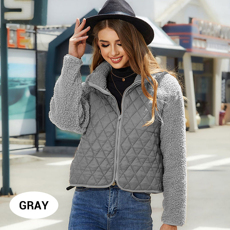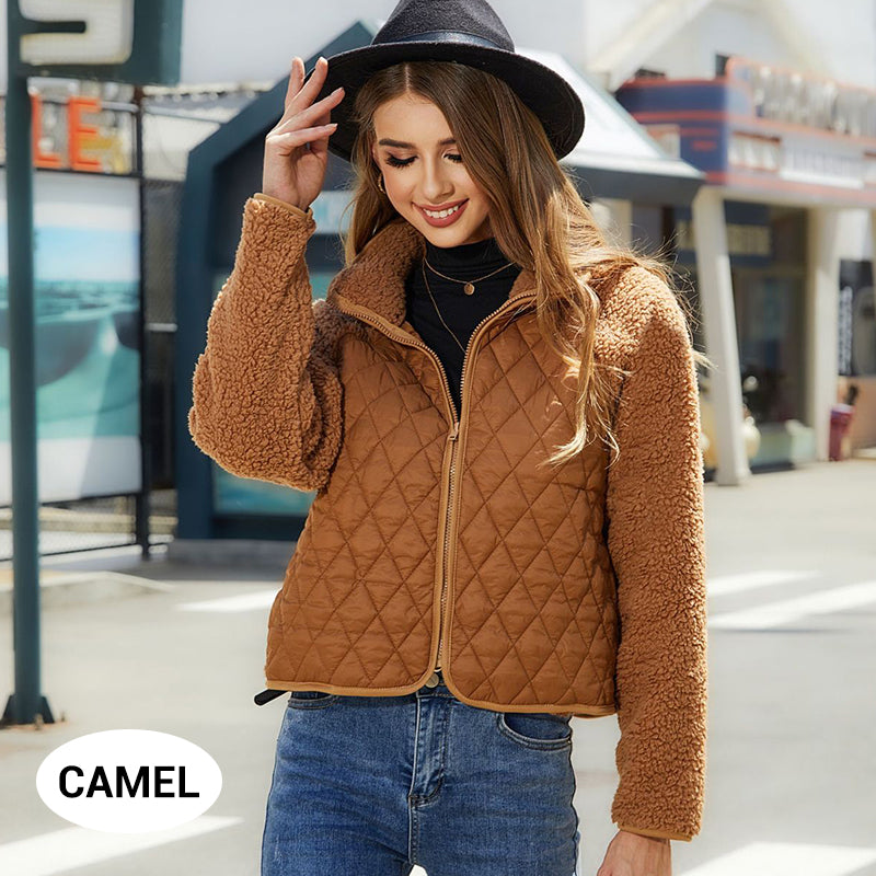 Package Includes: 1×Women's Plush Patchwork Embossed Plaid Jacket