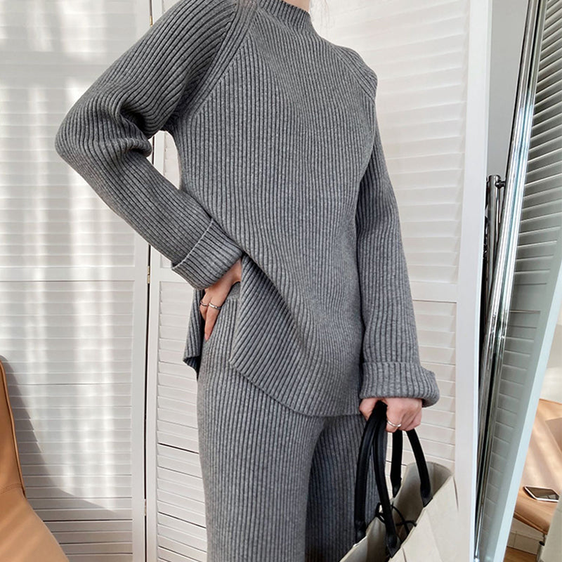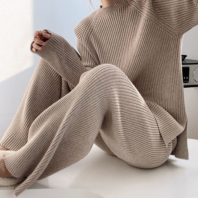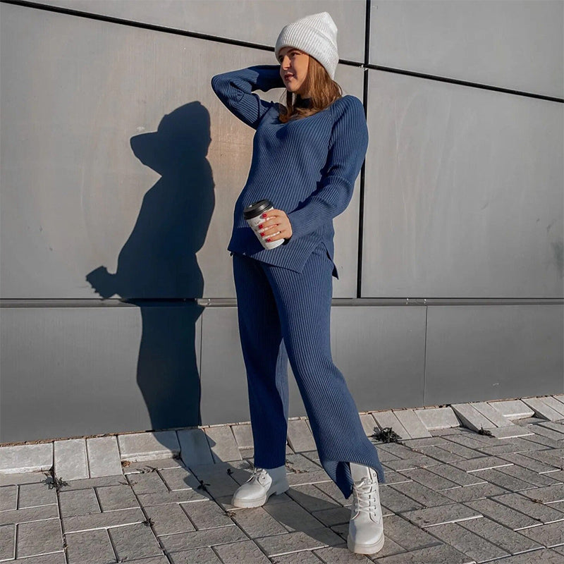 Women's Simple Vintage Split Hem Knit Set