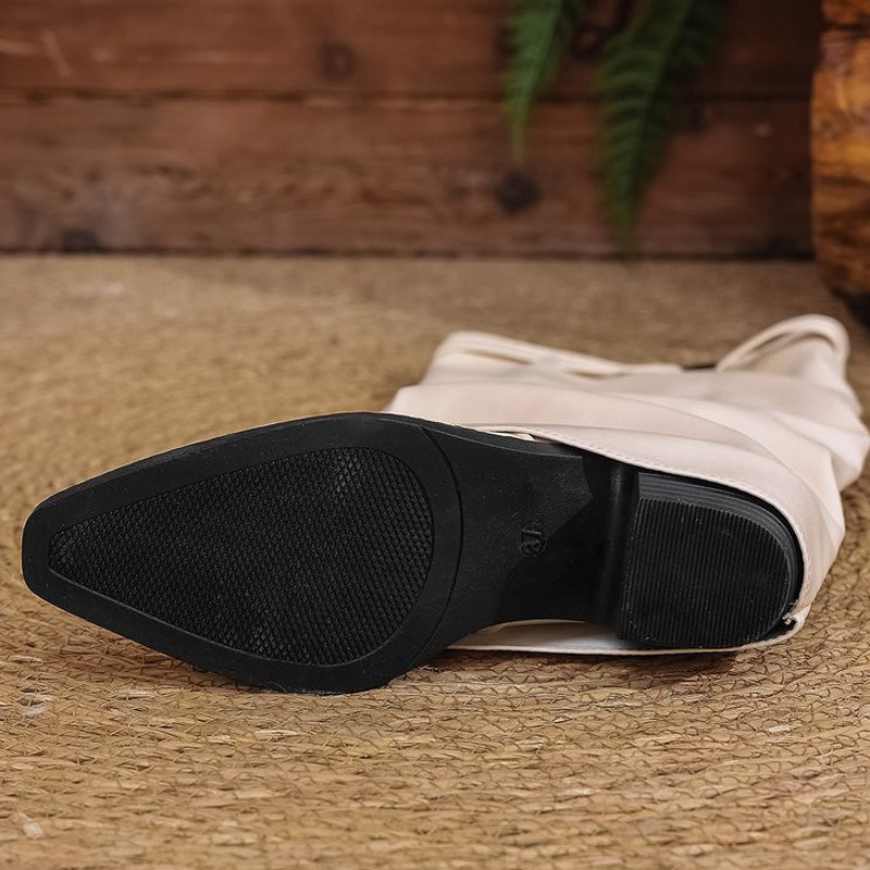 LOOSE WRINKLED BOOT SHAFT: Designed for a relaxed fit, the slouchy boot shaft adds a touch of effortless style to any outfit. This feature not only enhances comfort but also allows the boots to drape beautifully, providing a chic silhouette that flatters the leg. Whether paired with jeans or dresses, these boots effortlessly elevate your look.